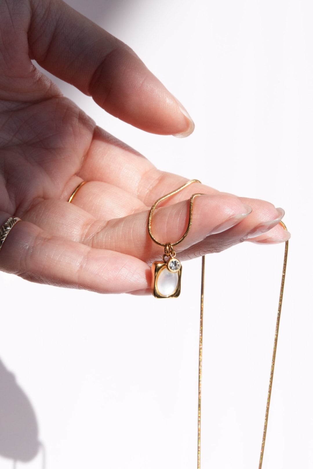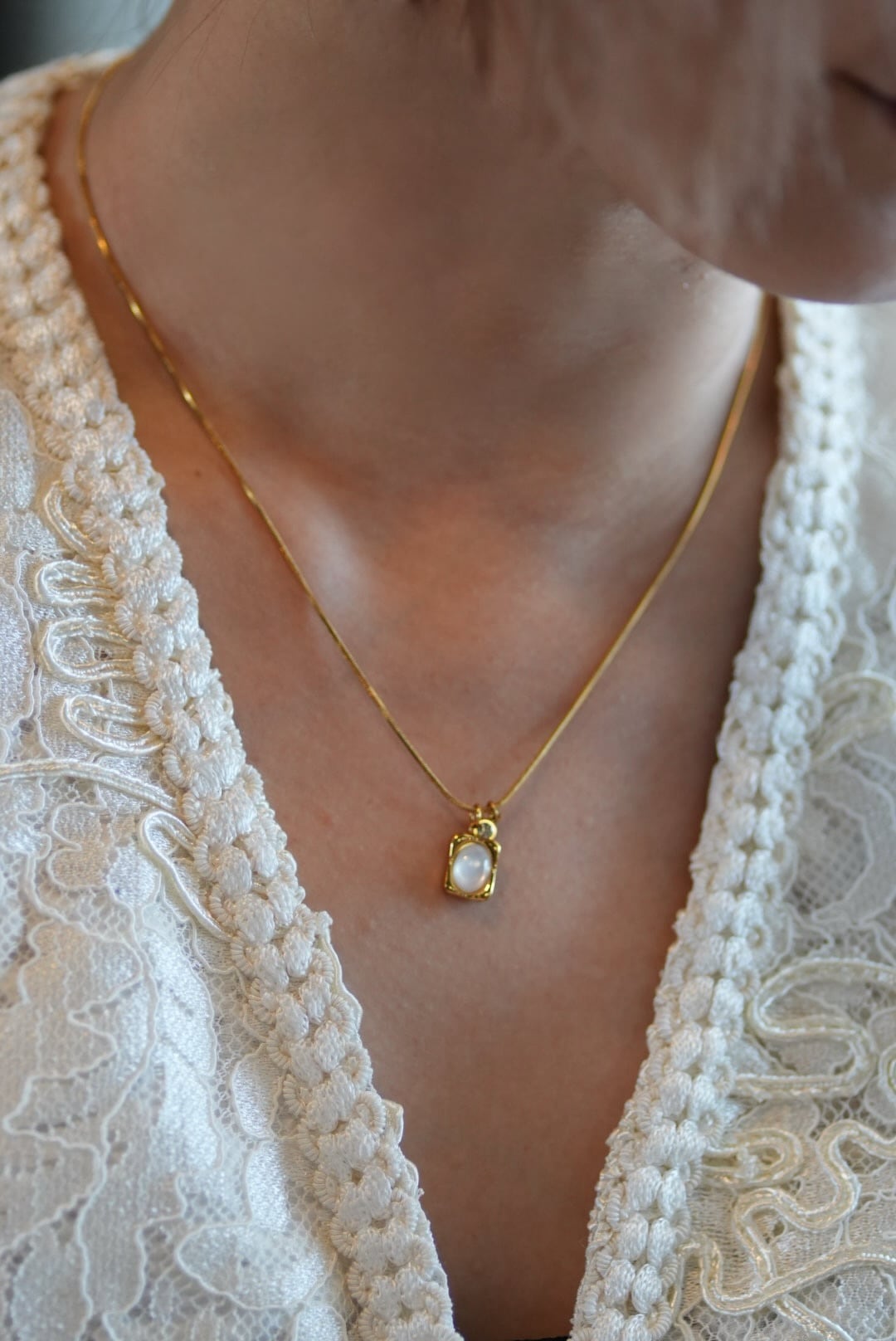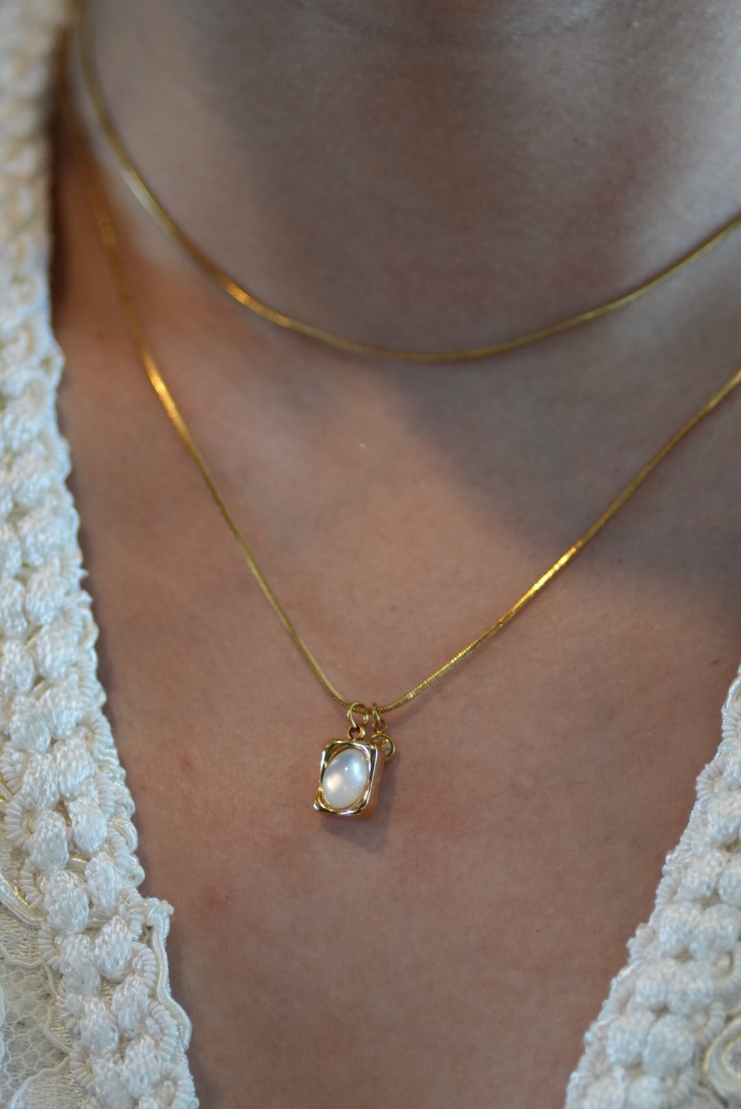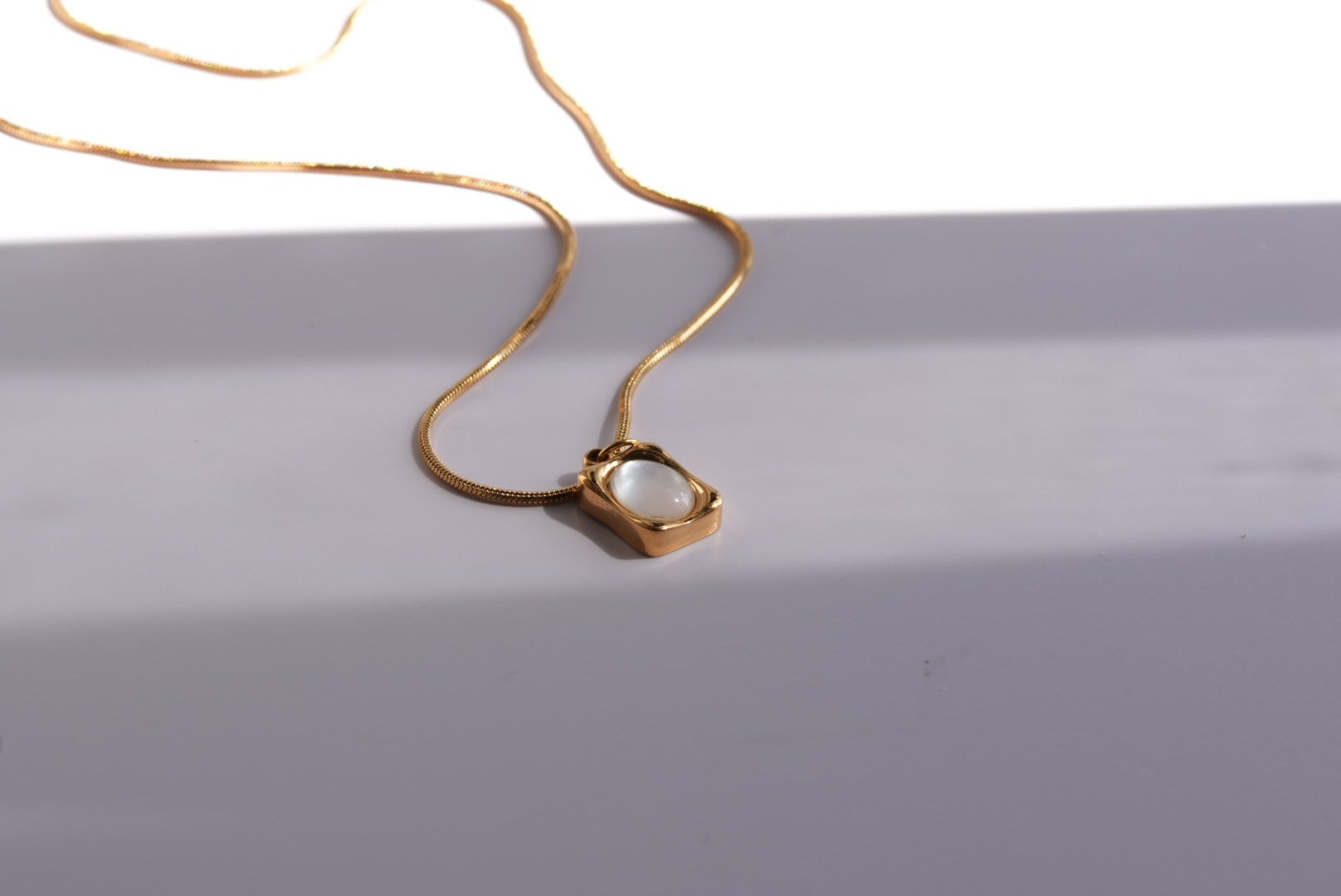 優雅さと耐久性が融合したスクエアムーンネックレス
