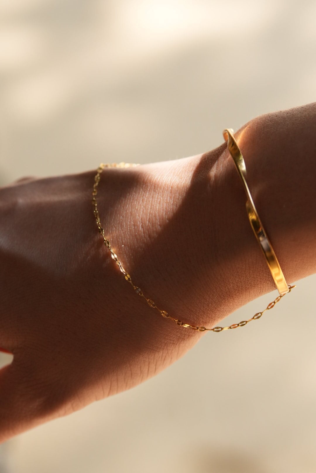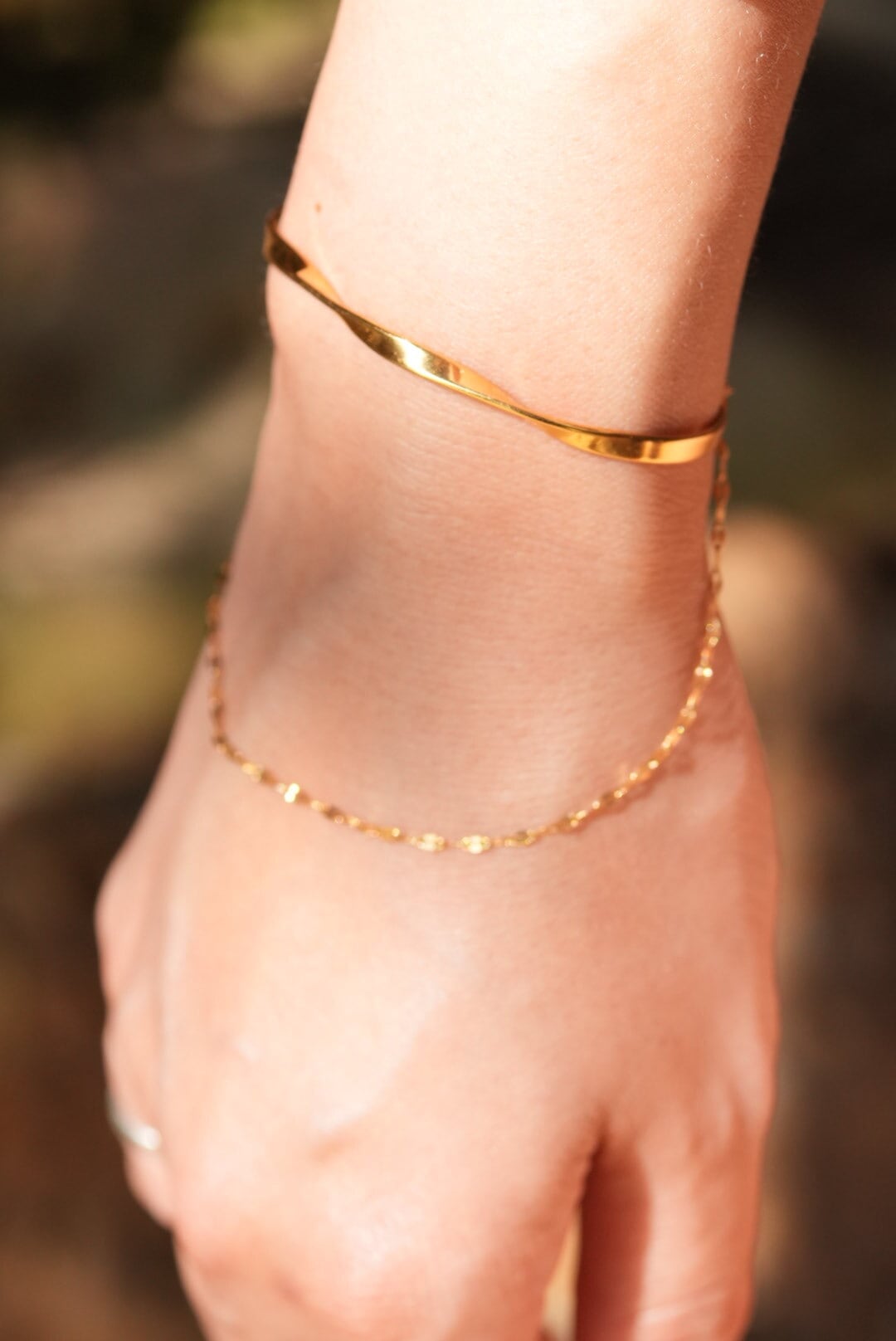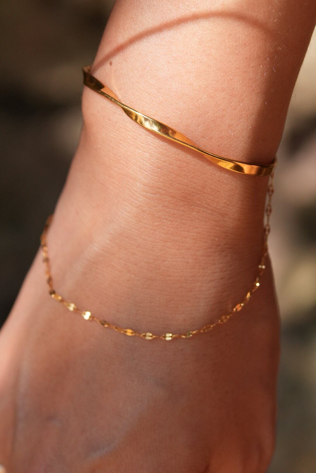 オシャレを引き立てるツイストバングル×チェーン