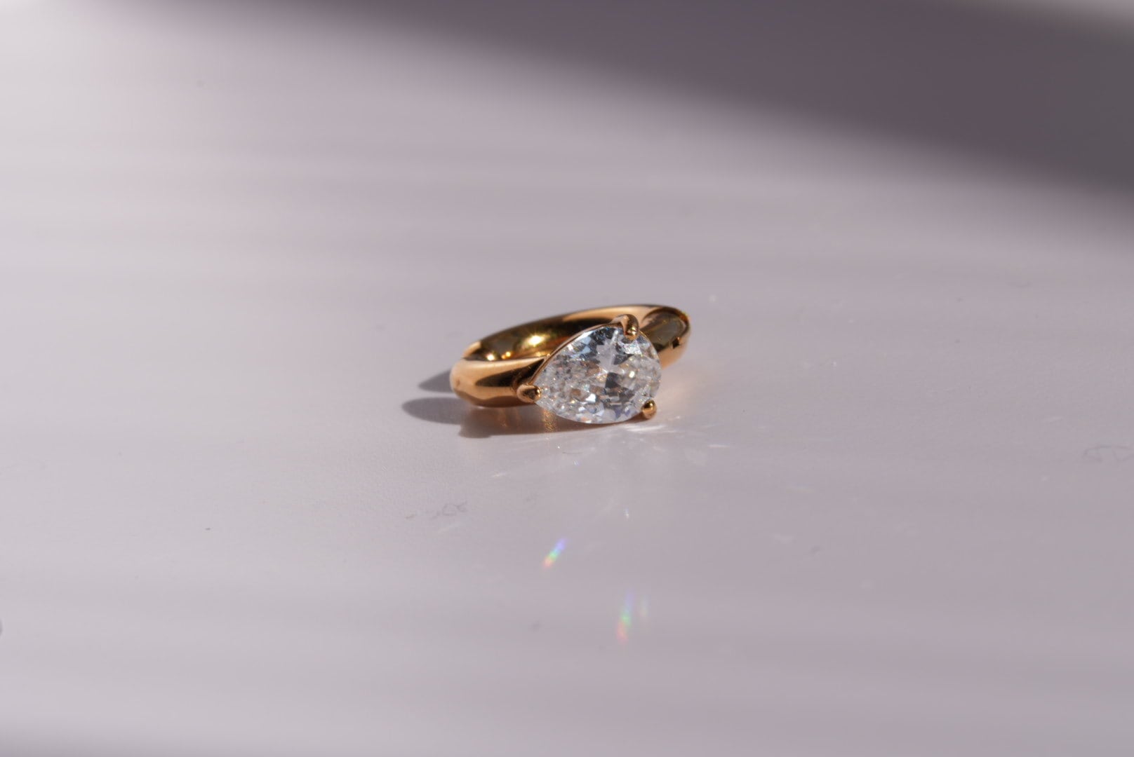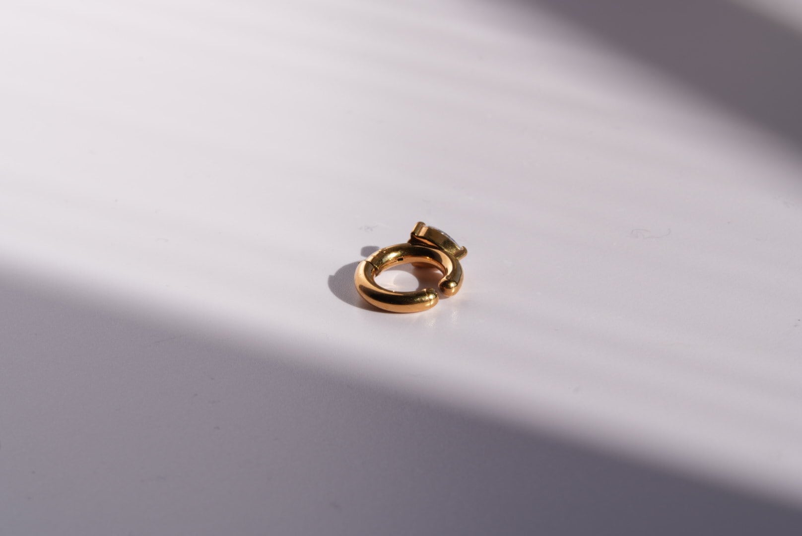 このイヤーカフは、華やかさを引き立てる一粒の大きなジルコニアが特徴です。