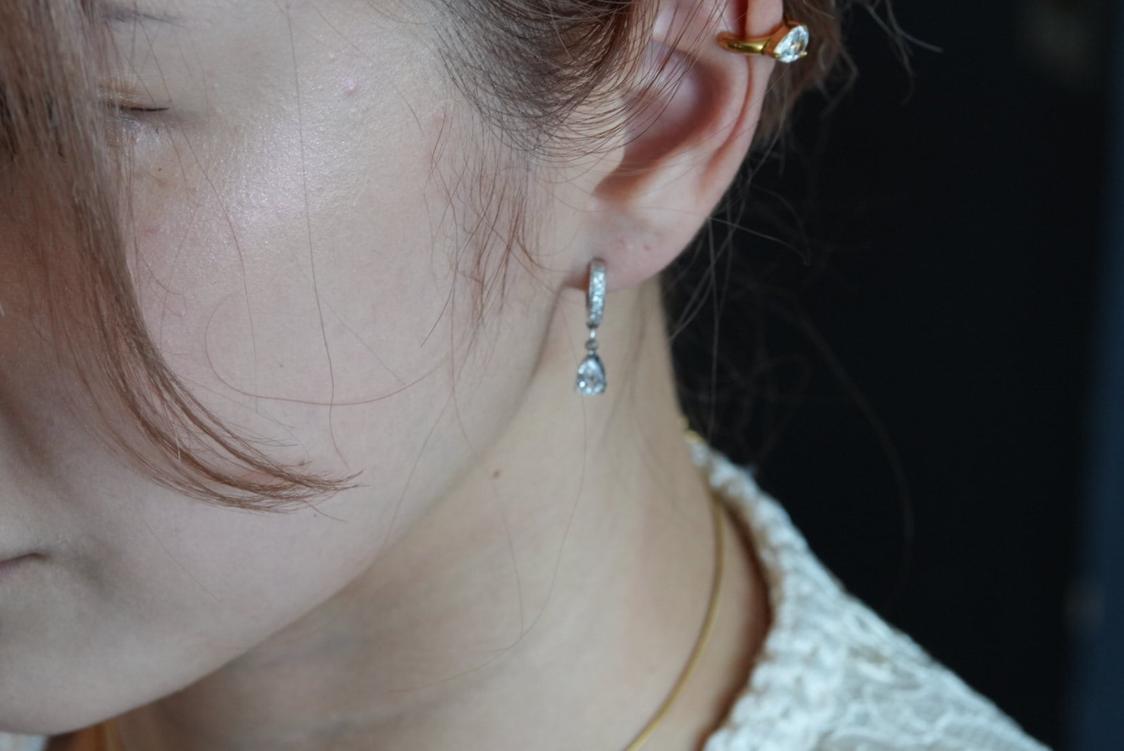 ピアスと一緒に着けることで、さらに印象的なスタイルを実現します。シンプルながらも存在感のあるデザインが、あなたの耳元を美しく彩ること間違いなし!