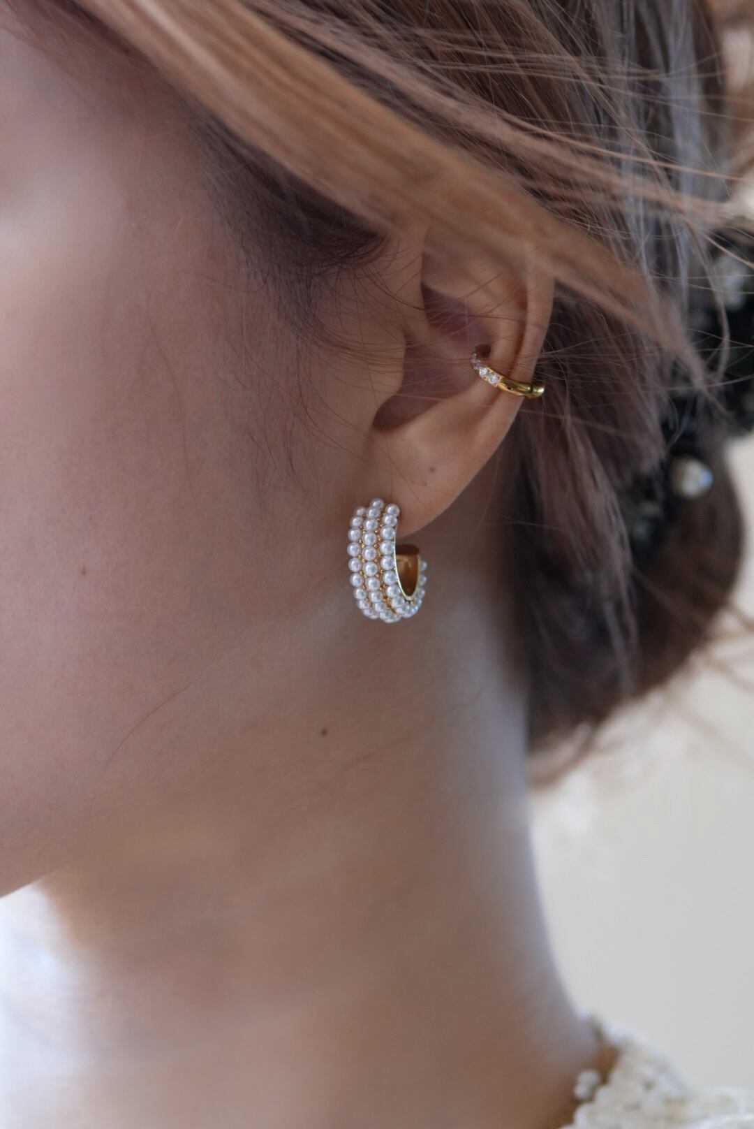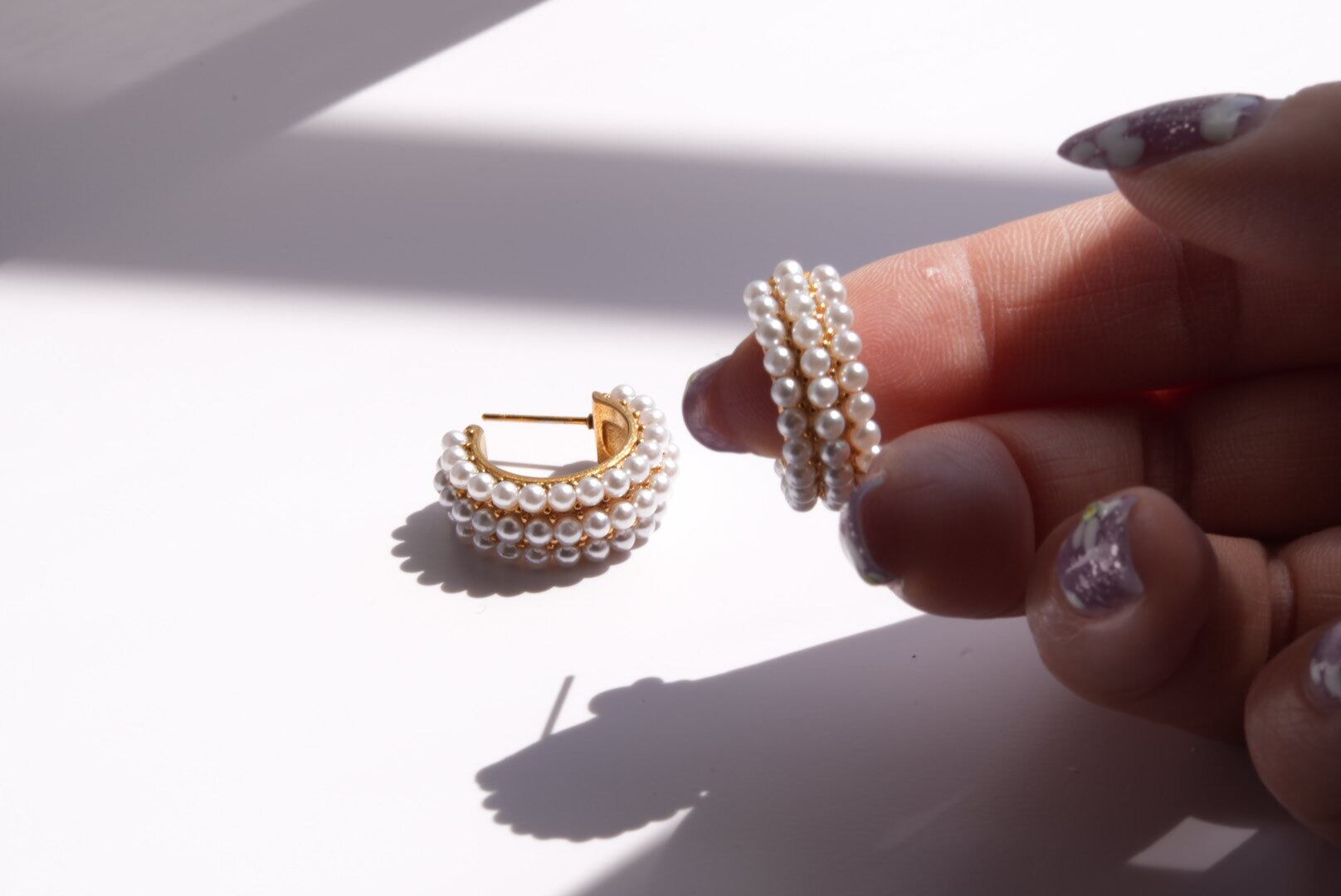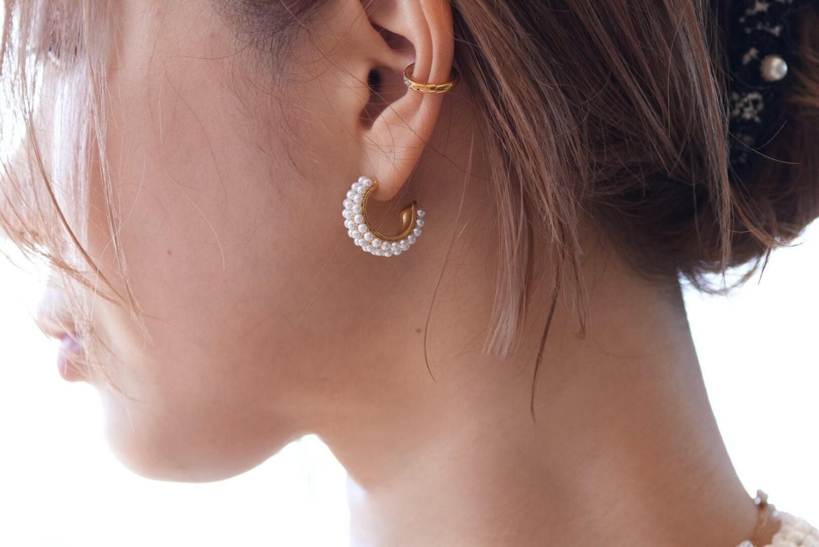 贅沢に装飾されたパールが華やかさをくれるこだわりのピアスです。このピアスは、洗練されたデザインと高級感を併せ持ち、耳元に特別な輝きを添えます。どんなコーディネートでも際立つ存在感を持ちながら、普段使いから特別なシーンまで幅広く活躍するアイテムとして、あなたの魅力を引き立てます。