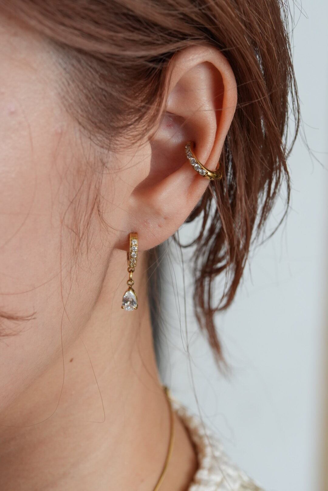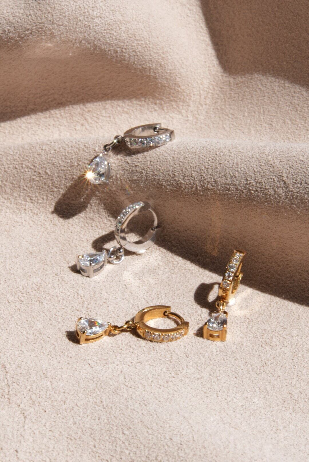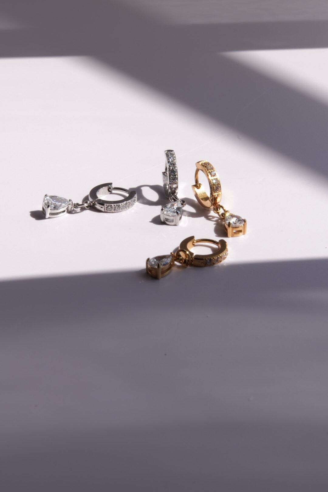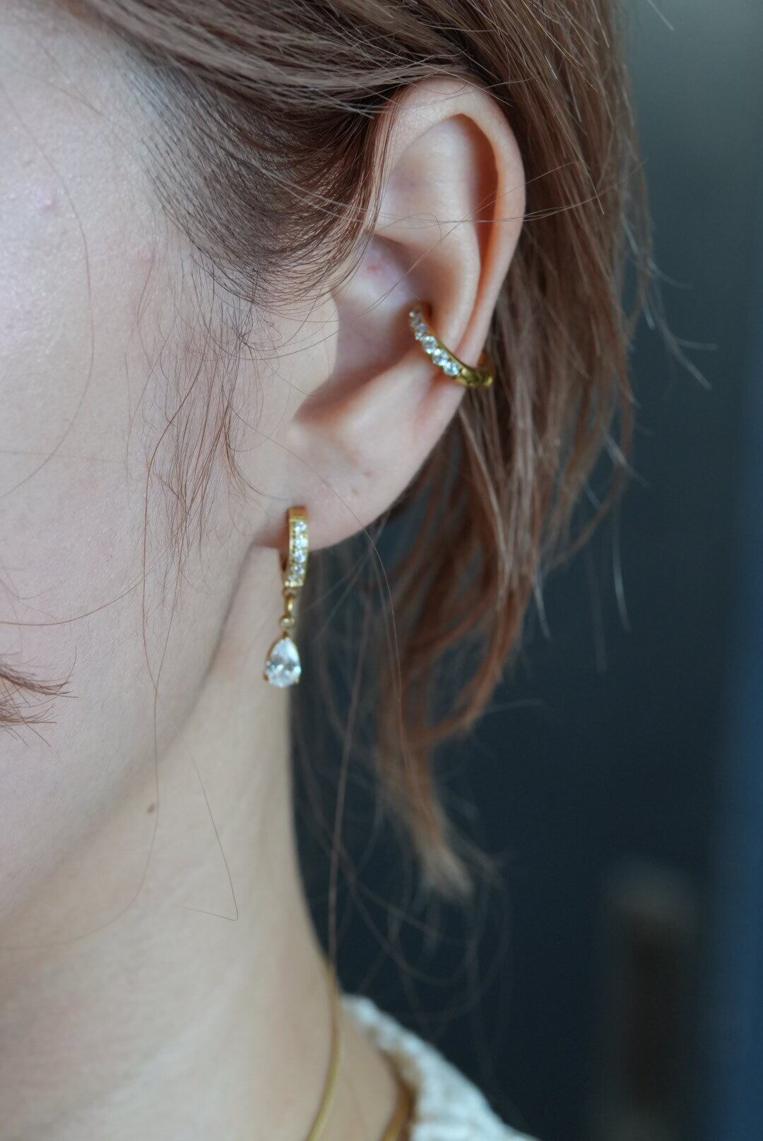 ジルコニアのドロップチャームとラインが美しく装飾されたデザインが特徴です。高級感と女性らしさを兼ね備え、シンプル過ぎず派手過ぎない絶妙なバランスで、日常使いから特別なシーンまで幅広く活躍するアイテムです。どんなコーディネートにも華やかさをプラスするこのピアスは、あなたの魅力を引き立てます。
