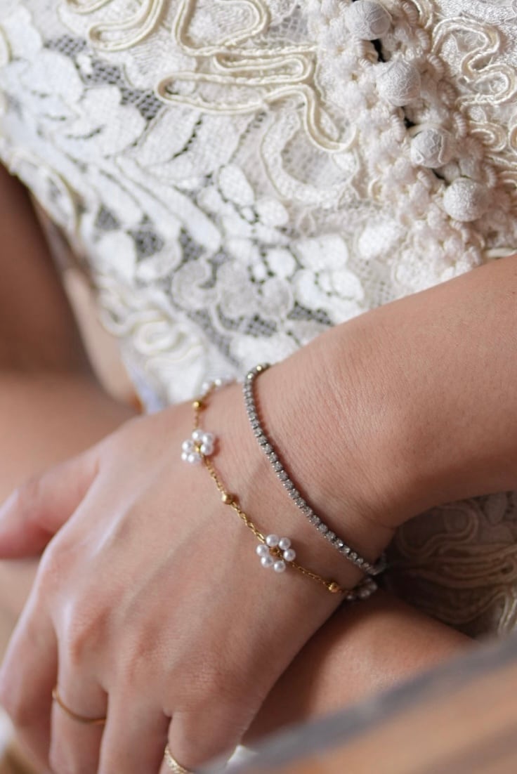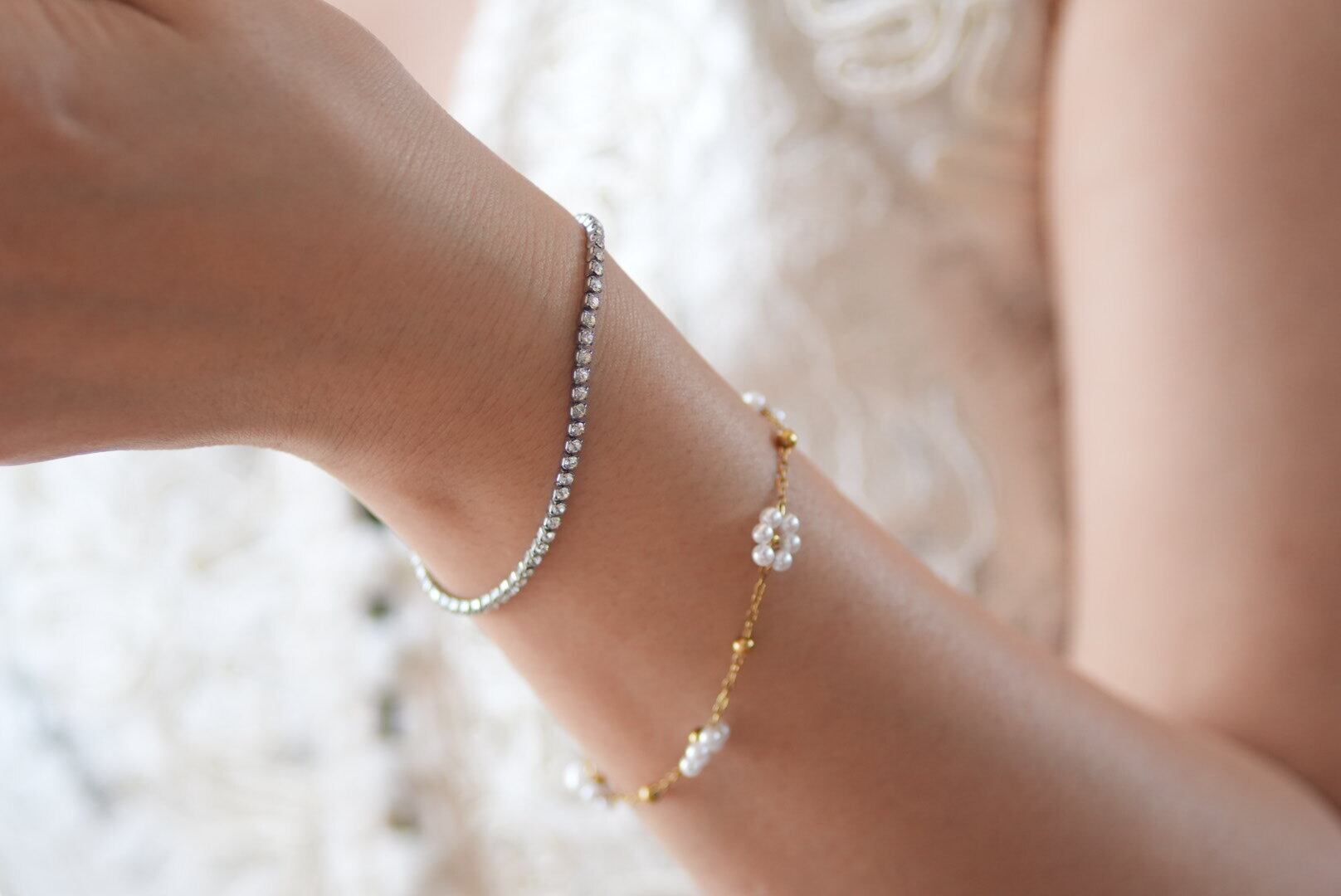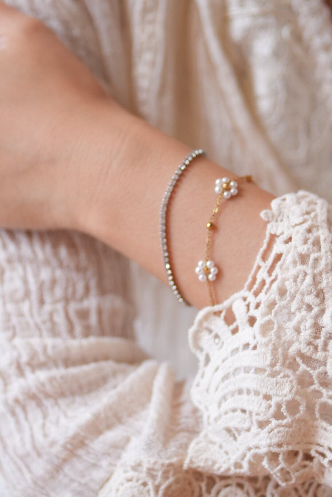小花パールブレスレット